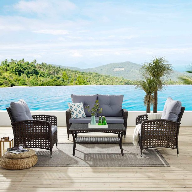 25+ 4 Pcs Patio Furniture Idea. Featuring with 1 coffee table, 1 loveseat and 2 single chairs, this patio furniture set can be combined in various ways according to your different needs. 2 pcs grey rattan footstool patio outdoor garden furniture.