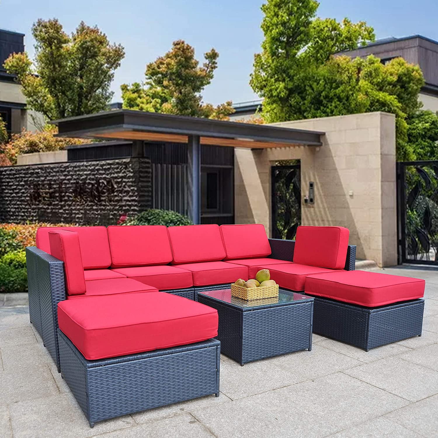 Amazon Com Vongrasig 6 Piece Small Patio Furniture Sets Outdoor Sectional Sofa All Weather Pe Wicker Patio Sofa Couch Garden Backyard Conversation Set With Glass Table Beige Cushions And Red Pillows Brown Garden from images-na.ssl-images-amazon.com
